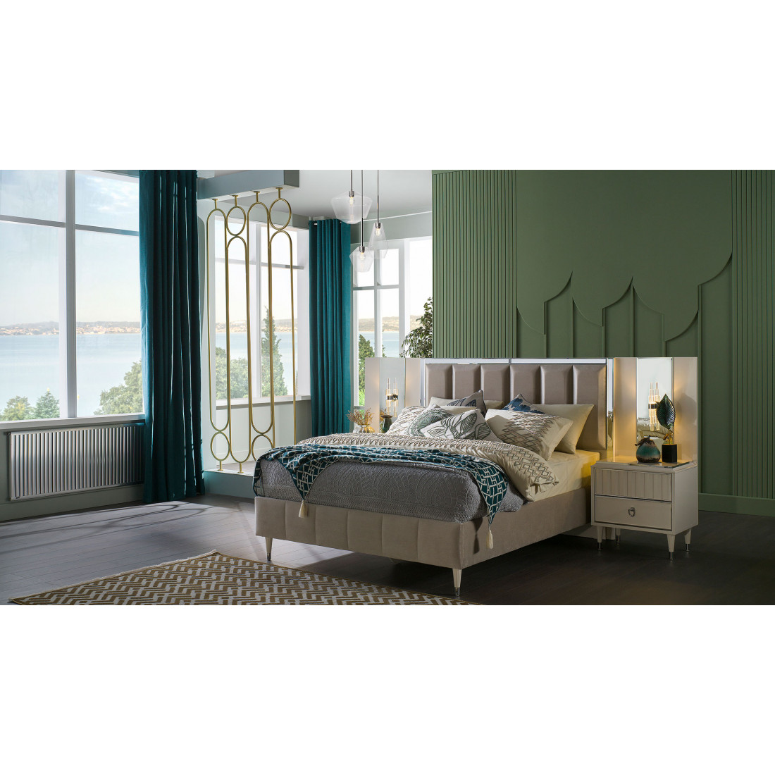 Дополните  двухспальнюю кровать Gravita (Гравита) GRAV-26от турецкого бренда BELLONA  соответствующими атрибутами для спального гарнитура.