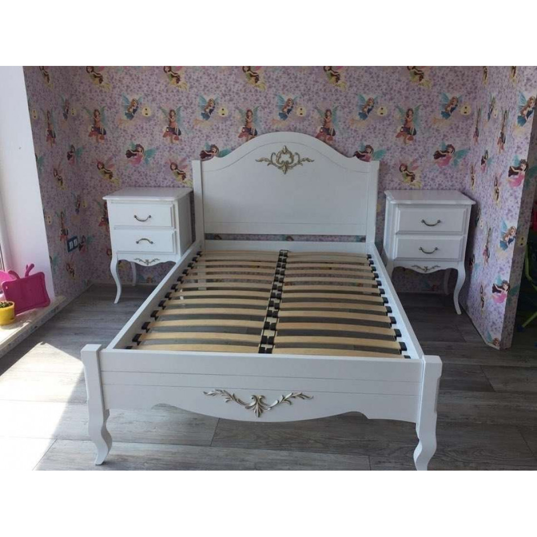 Кровать оснащена ортопедическим основанием для матраса — ламелями.