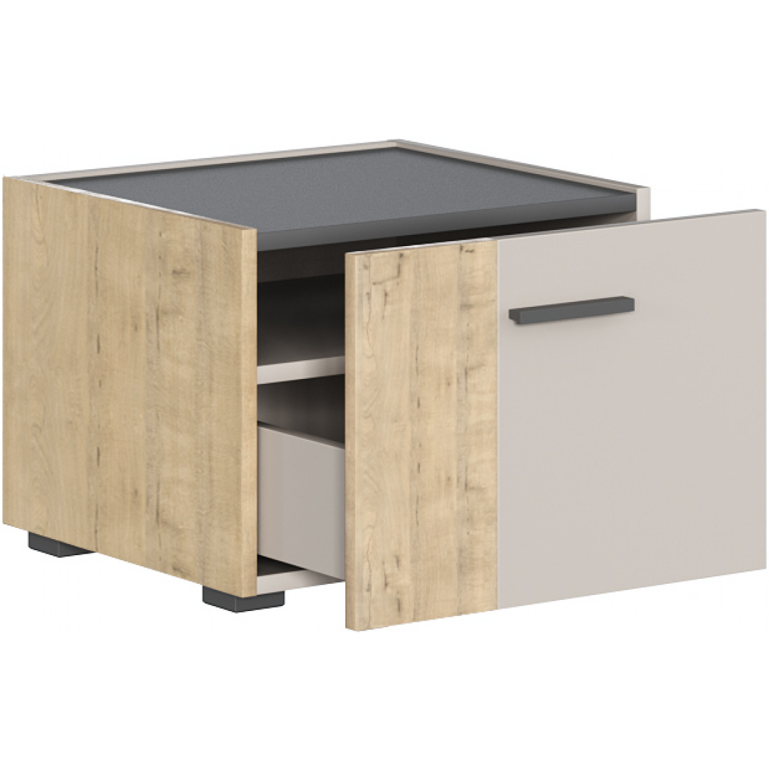 • Тумба с выдвижным ящиком, за фасадом ящика присутствует ниша;
