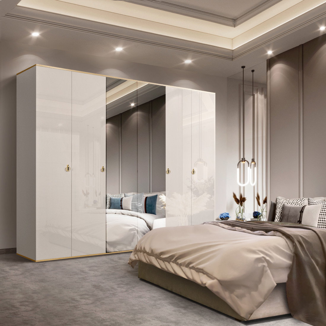 Пятистворчатый шкаф для одежды с зеркалом Rimini РМШ1/5 (латте)