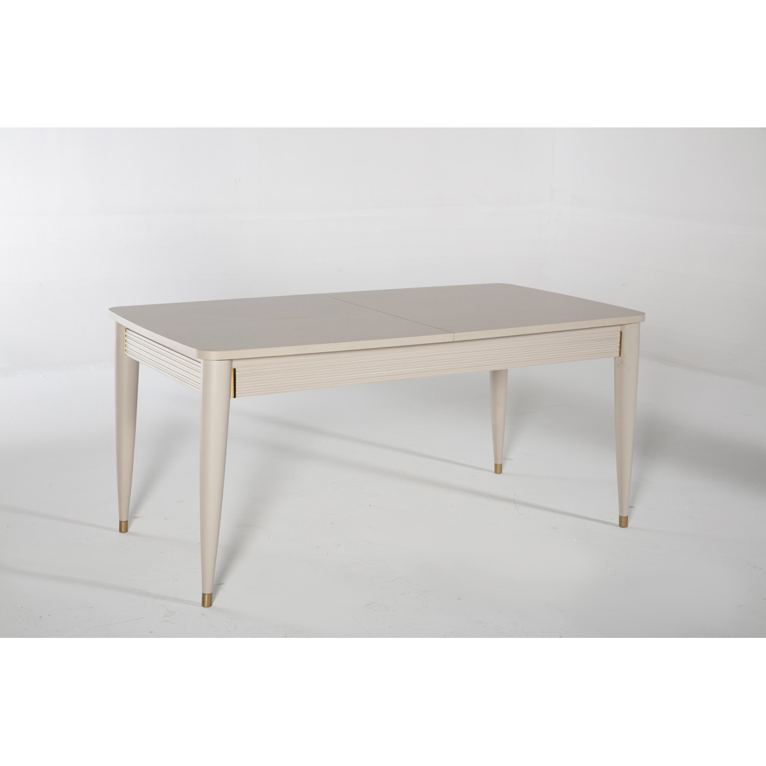 Обеденный раздвижной стол Санвито SANV-14 прямоугольной формы имеет габаритные размеры 1640 мм x 900 мм x 765 мм. В разложенном состоянии длина стола увеличивается до 2040мм. Стол продолжает линейку коллекции Санвито, сочетая в себе кремовый цвет, вертикальные полосы и ненавязчивую золотистую отделку некоторых элементов. Наслаждайтесь красотой и эстетикой SANVITO в любом предмете интерьера.