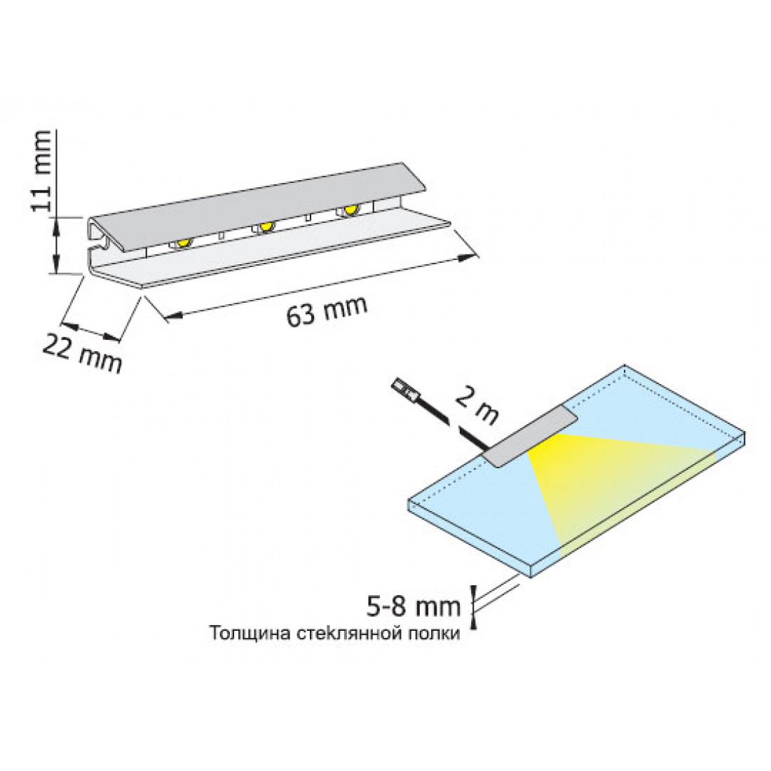 Светильник HLT Prismatic FT (синий) для подсветки стеклянных полок к шкафам-витринам Виго от фабрики МебельГрад. Также дополнительно необходим трансформатор ZSI-12DC-6W.